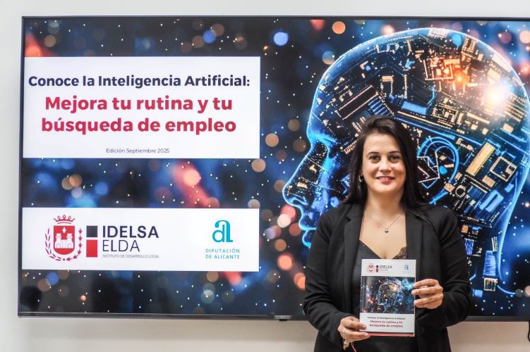 El Instituto de Desarrollo Local de Elda (IDELSA) ha lanzado una guía sobre el uso de la Inteligencia Artificial (IA) y las oportunidades laborales que ofrece esta tecnología. Así lo ha anunciado esta mañana la concejala de Fomento Económico, Industria y Empleo, Lorena Pedrero, quien ha destacado que el manual está disponible en formato digital en la web de Idelsa y también en formato físico en la oficinas ubicadas en la Casa Grande del Jardín de la Música.